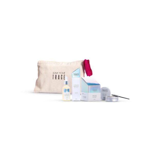 The Romantic Radiance Duo is your go-to clean look set. It features best-selling products; Brow Soap for perfectly groomed brows, the nourishing Liquid Magic Face oil for a radiant complexion, last but not least, Trace’s pouch to accommodate all your products to have on the go.